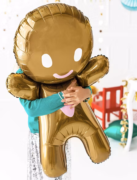 Läcker folieballong i form av en pepparkaksgubbe! Folieballongen kan fyllas med luft eller helium.