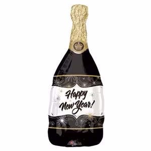 Folieballong i form av en stor champagneflaska med texten "Happy New Year!". Kan fyllas med vanlig luft eller helium.Observera! Denna ballongen säjs även m