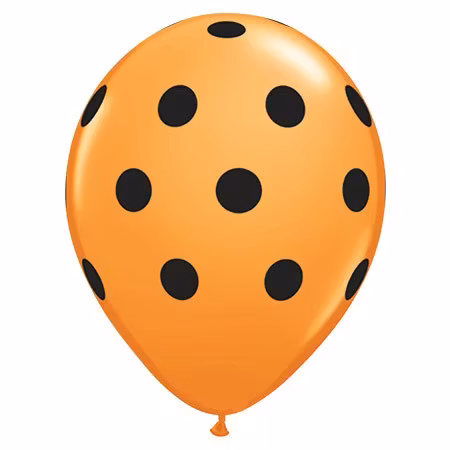 Orange ballong med svarta prickar. Perfekt att blanda i en ballongbukett till Halloween!Observera att ballonger som är fyllda med helium beställer du här v
