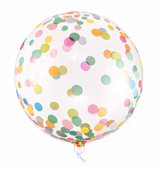En genomskinlig ballong med färgglada prickar. Ballongen är stor och rund och blir pricken över i:et på varje fest! Kan fyllas med helium eller luft. Mått:
