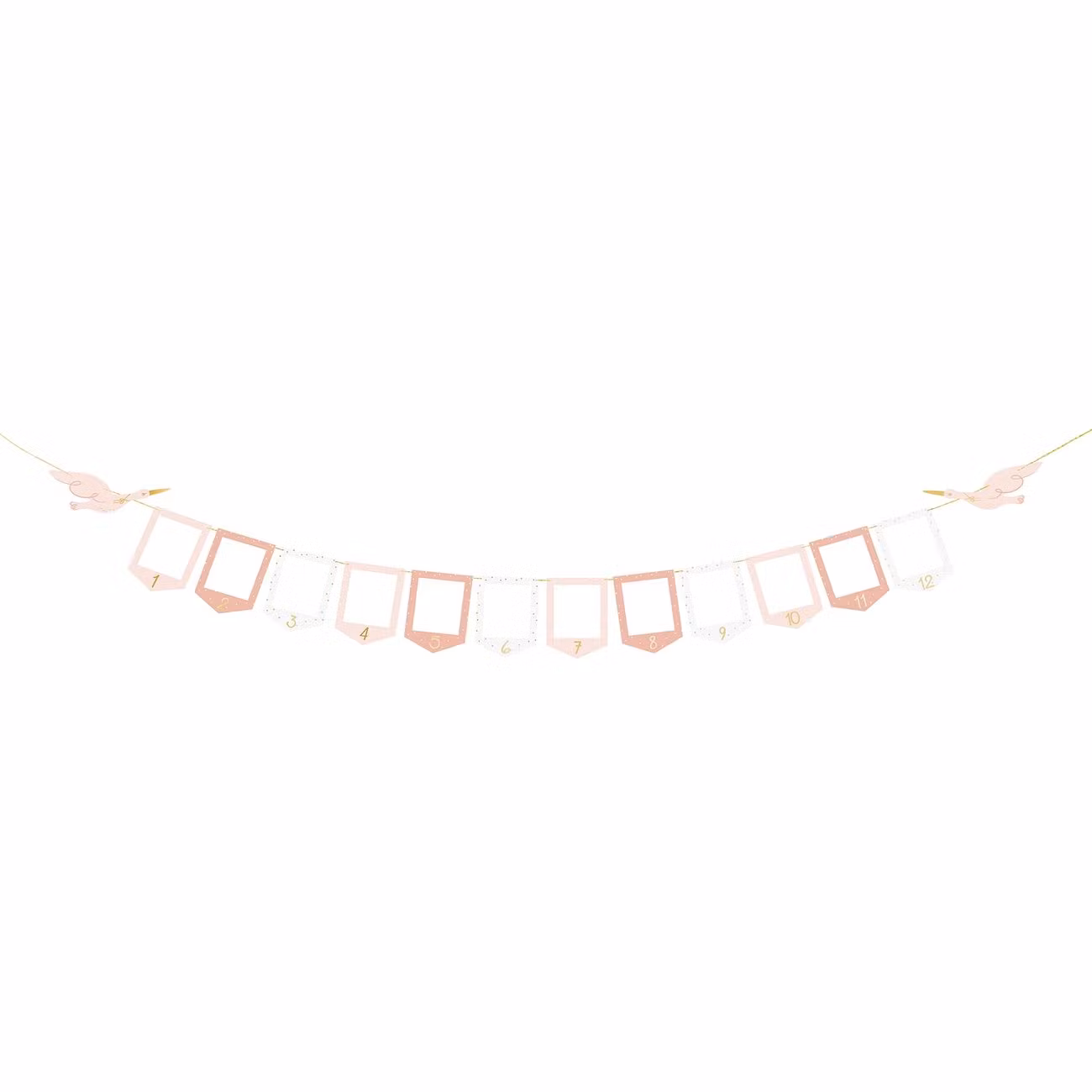 Girlang Fotoramar Baby mäter ca. 2 meter och har en mängd olika ramar att fylla som alla mäter 10,5 x 11 cm. Rolig och personlig detalj på födelsedagskalas och baby showers!