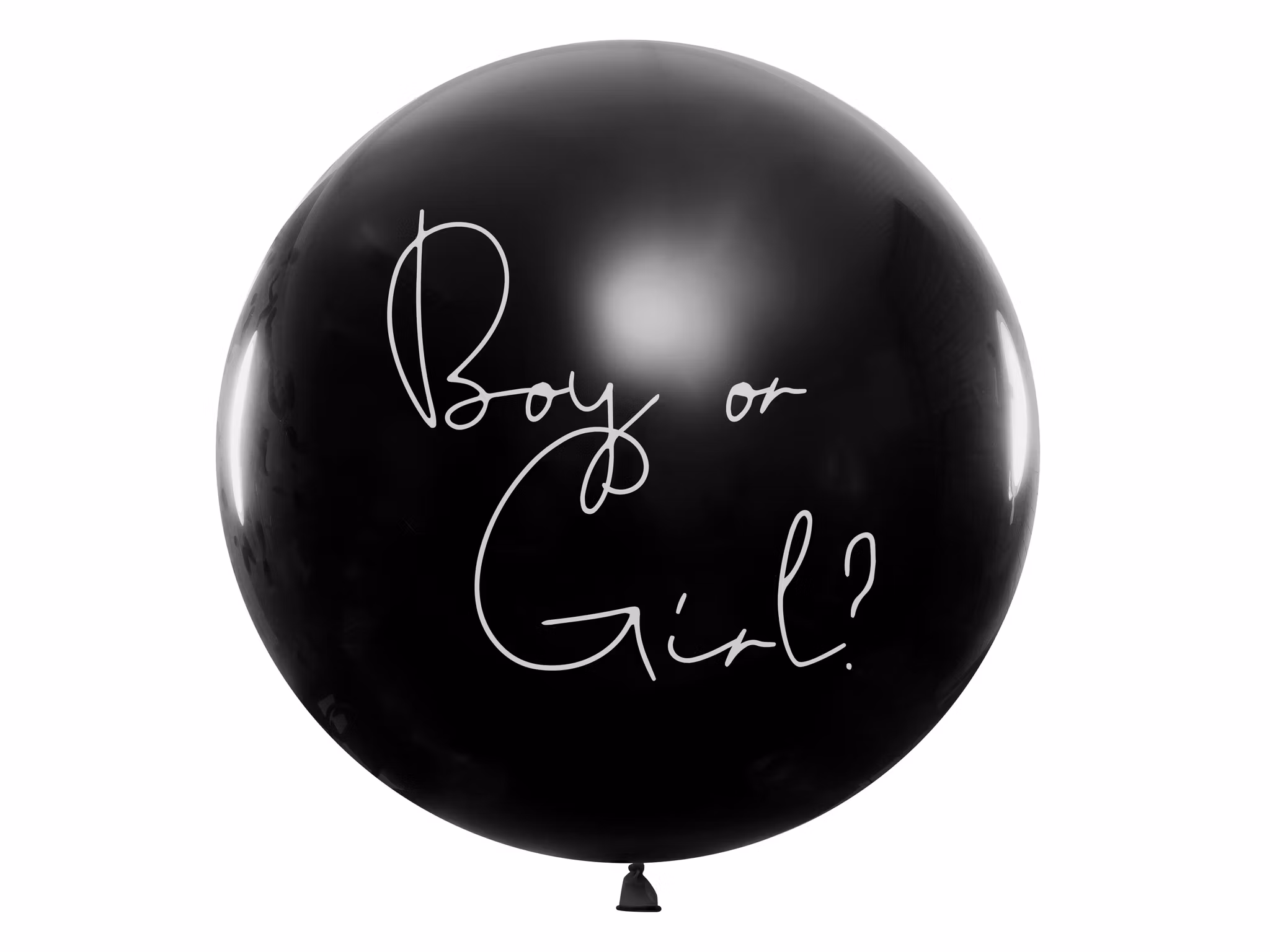 Svart jätteballong ca 80 cm "Boy or Girl?" fylldmed rosa eller blå konfetti som ni sedan kan poppa på er baby shower eller "gender reveal party" för att avslöja