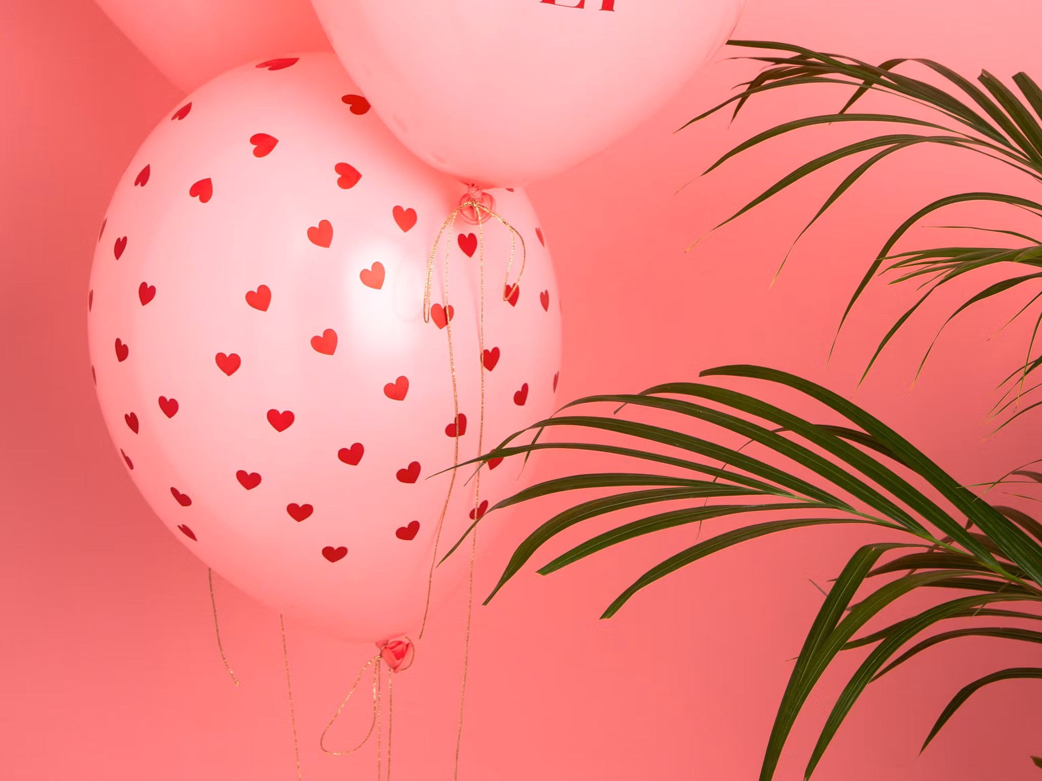 Vackra rosa och röda ballonger med små röda hjärtan! Passar perfekt i en ballongbukett på alla hjärtans dag!Ballongerna säljs i styck.Mått: ca 30 cm