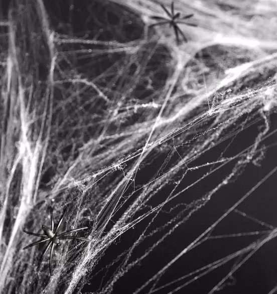 Vitt spindelnät att dekorera med på bord, buffén eller över andra dekorationer!