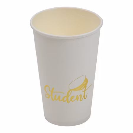 Somriga muggar med texten STUDENT i guld, perfekt att duka bordet med till din student!Säljes i 8-pack