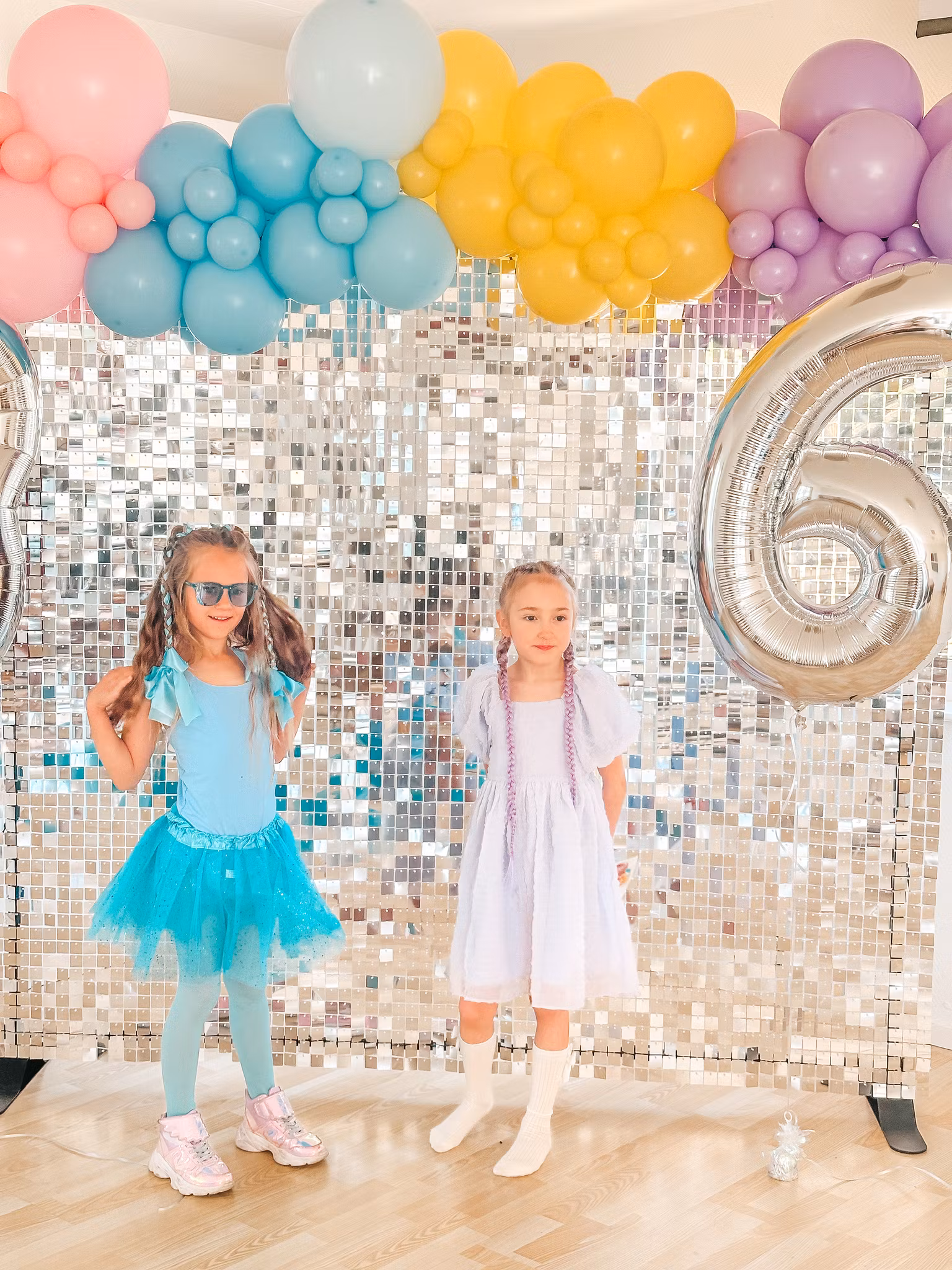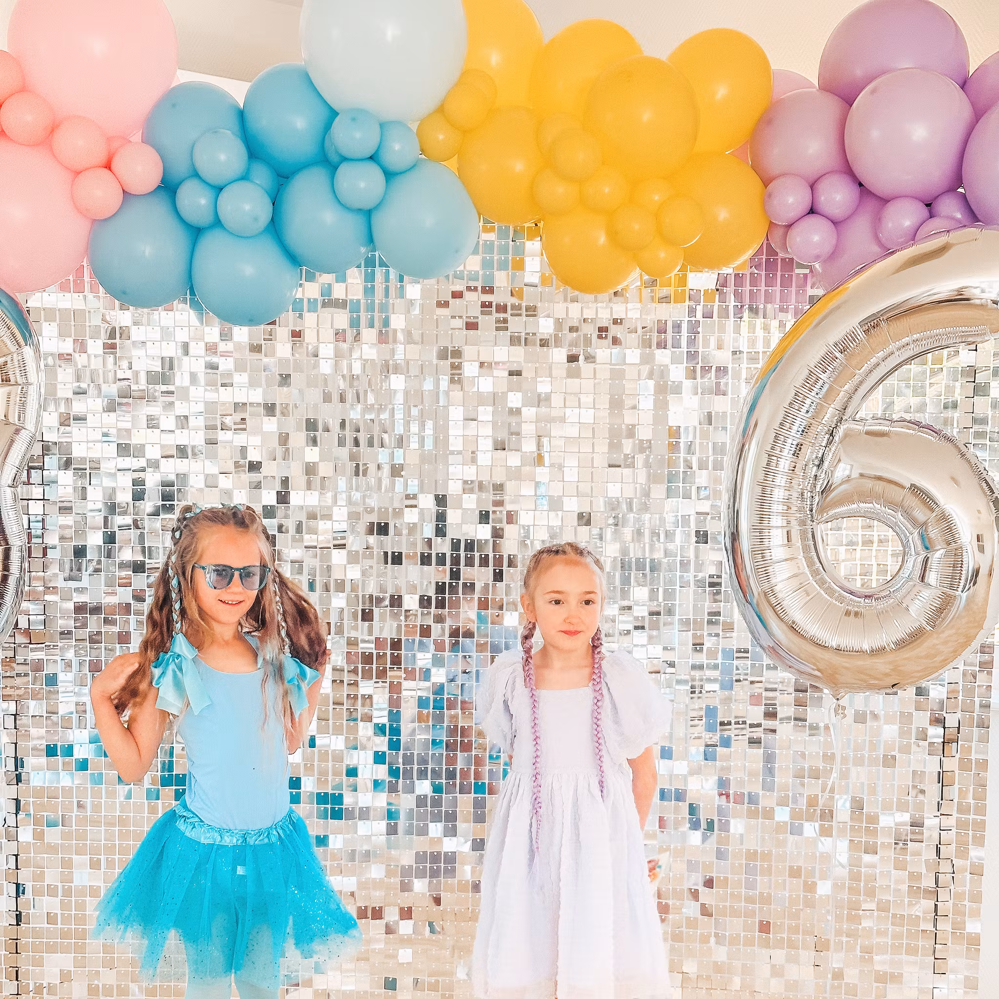 ✨ Skapa magi på din fest med vår silvriga fotovägg inkl. ballongbåge! ✨